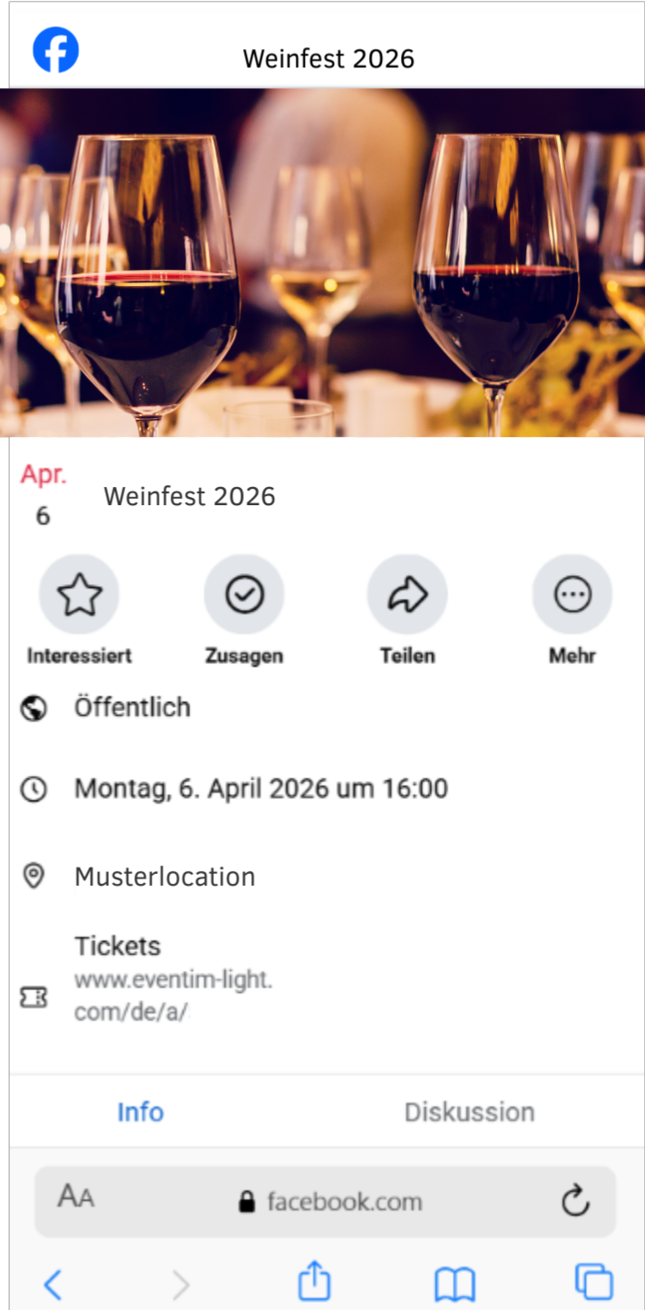 - Poste dein Event direkt auf deiner Facebook-Seite mithilfe unserer Facebook-Integration.